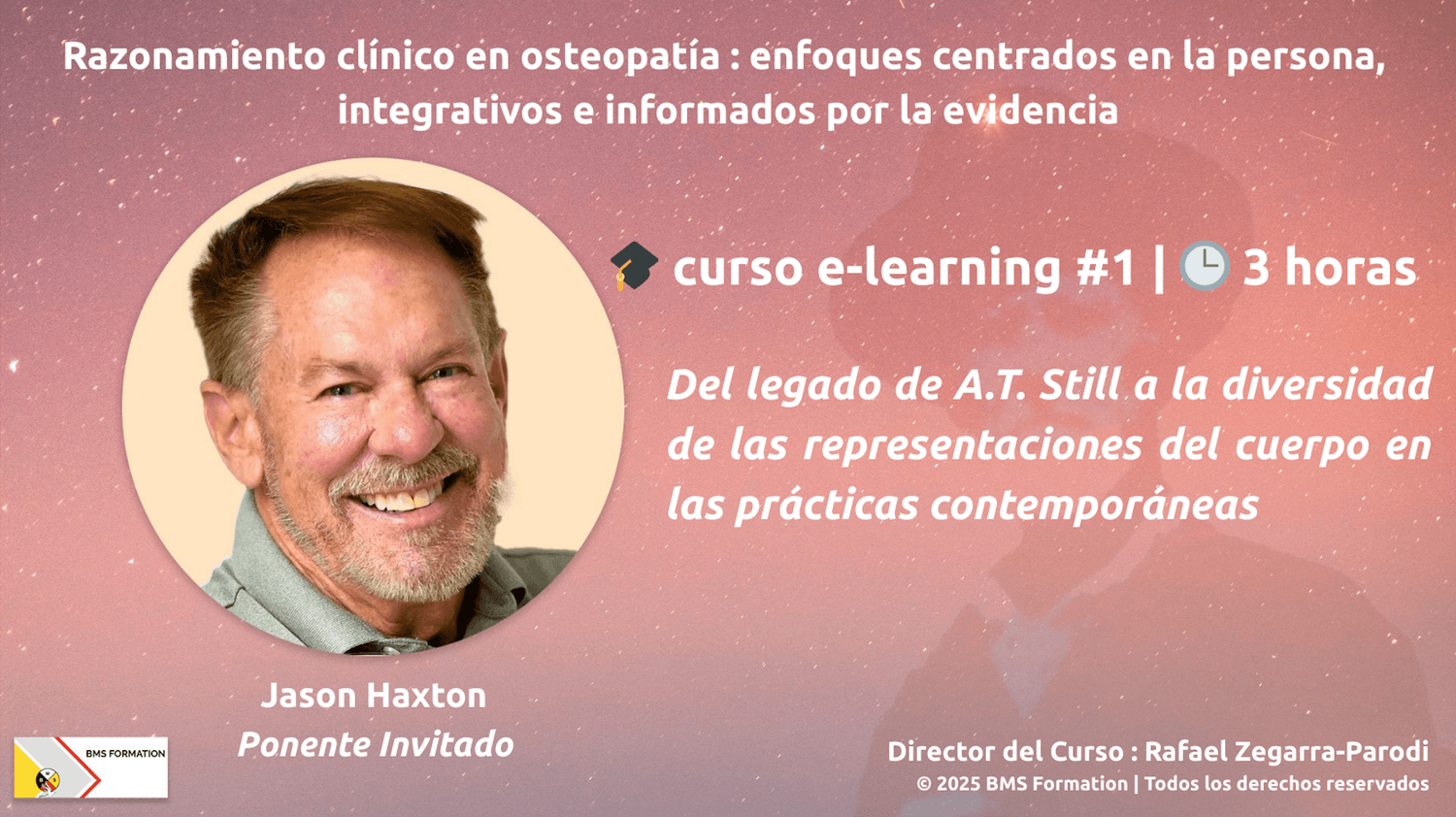 Le damos la bienvenida al programa « Razonamiento clínico en osteopatía: enfoques centrados en la persona, integrativos e informados por la evidencia », una formación única que combina los principios de la osteopatía con los avances de las neurociencias y de la antropología médica para mejorar la toma de decisiones clínicas.